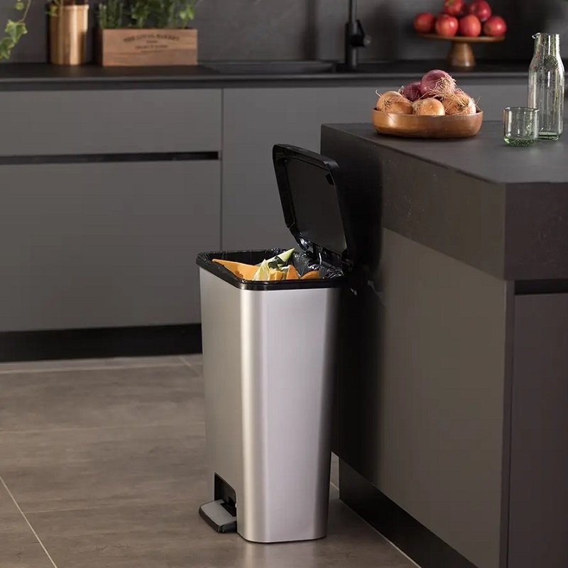 Kosz 50l do segregacji śmieci i odpadów z pedałem wykonany jest z wysokiej jakości tworzywa sztucznego. Świetnie sprawdza się w każdym domu i biurze, w których przykłada się uwagę do codziennej segregacji odpadów. Ponieważ pokrywa jest uchylna zapobiega wydostawaniu się przykrych zapachów na zewnątrz kosza.