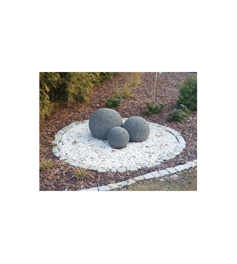 Betonowa kula wykonana z betonu wysokiej klasy C30/37 wykonana w technologıi „beton płukany” pokryta kamieniem płukanym lub mieszanką grysów.