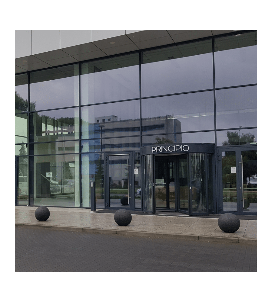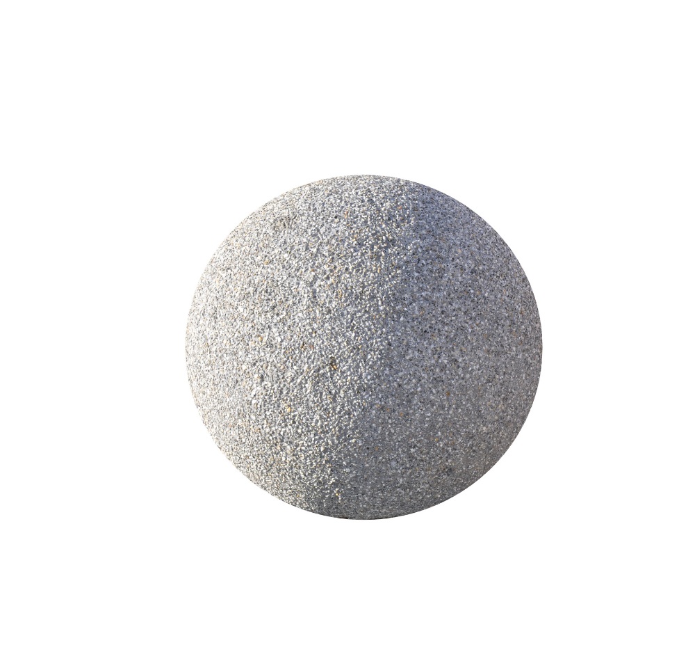 Betonowa kula wykonana z betonu wysokiej klasy C30/37 wykonana w technologıi „beton płukany” pokryta kamieniem płukanym lub mieszanką grysów.