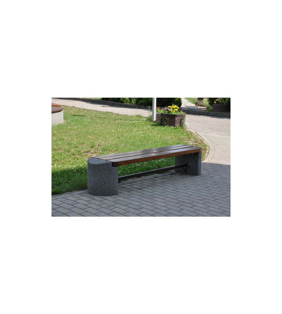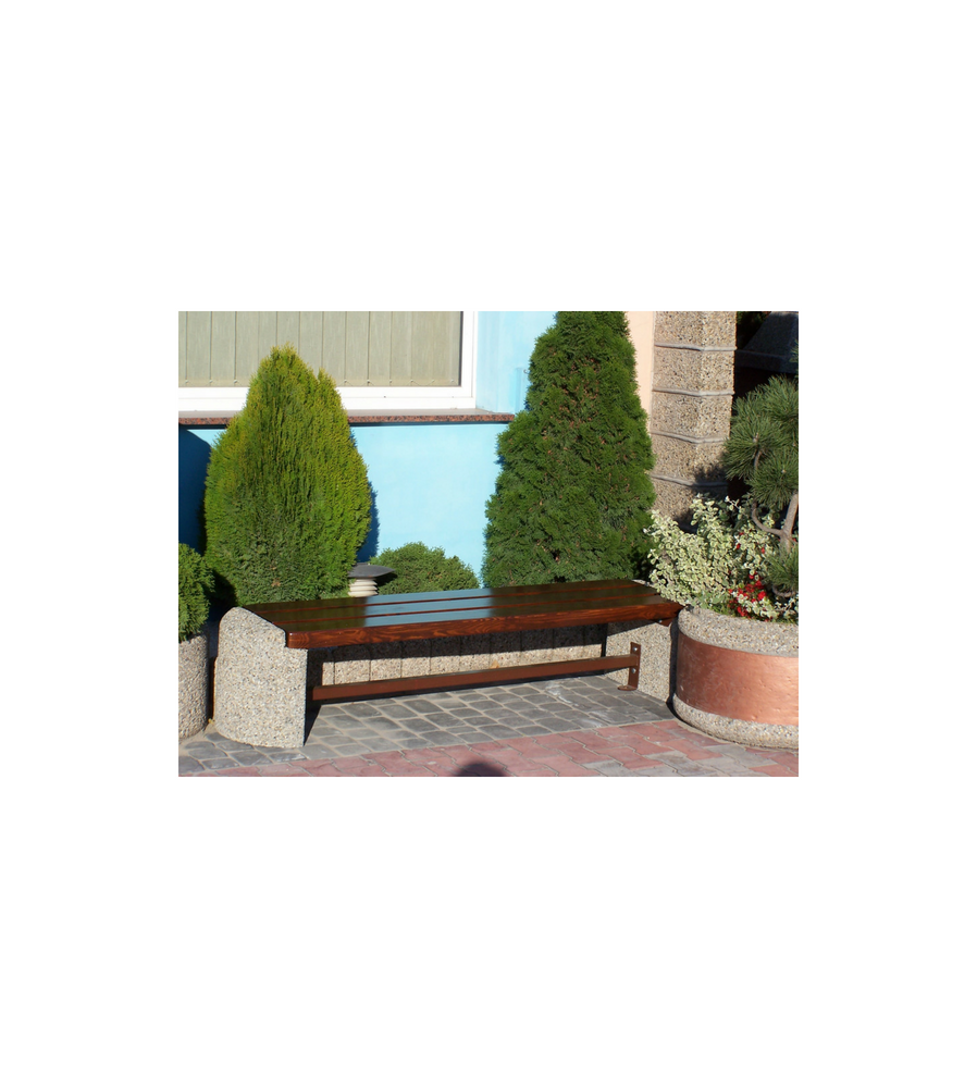 Elementy betonowe ławki wykonane są z betonu wysokiej klasy C30/37 zbrojonego stalą oraz mikrozbrojeniem, wykonane w technologii „beton płukany” pokryty kamieniem płukanym lub mieszanką grysów.