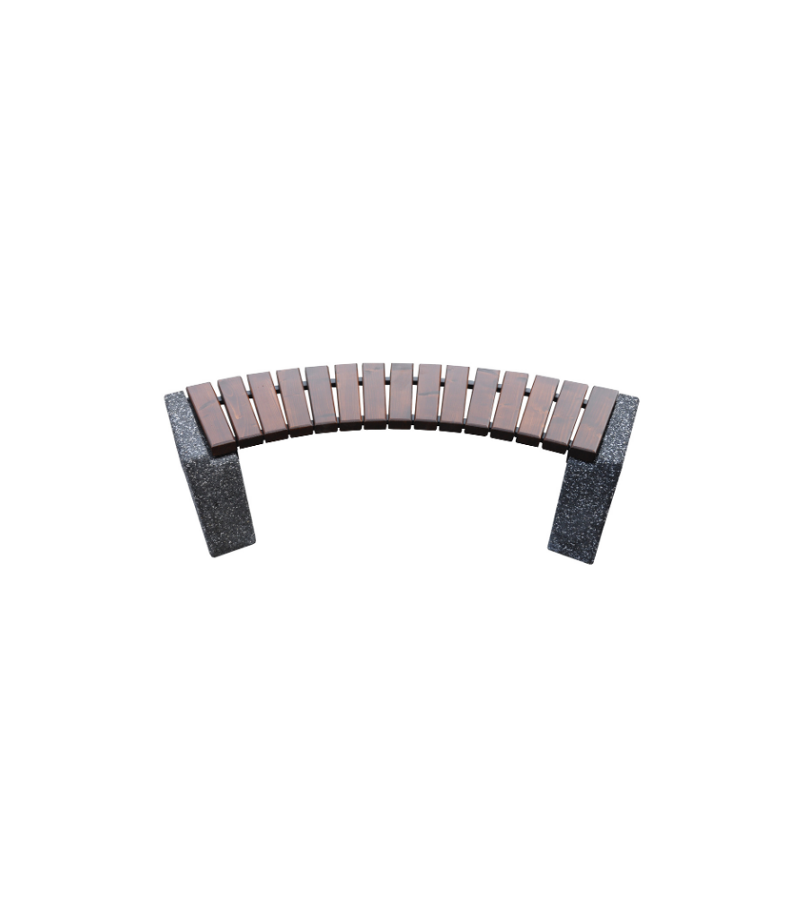 Elementy betonowe ławki wykonane są z betonu wysokiej klasy C30/37 zbrojonego stalą oraz mikrozbrojeniem, wykonane w technologii „beton płukany” pokryty kamieniem płukanym lub mieszanką grysów.