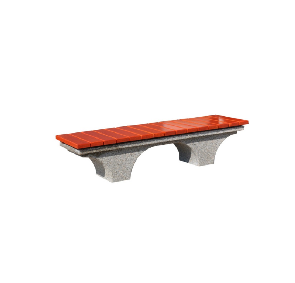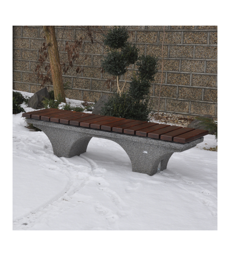 Elementy betonowe ławki wykonane są z betonu wysokiej klasy C30/37 zbrojonego stalą oraz mikrozbrojeniem, wykonane w technologii „beton płukany” pokryty kamieniem płukanym lub mieszanką grysów.