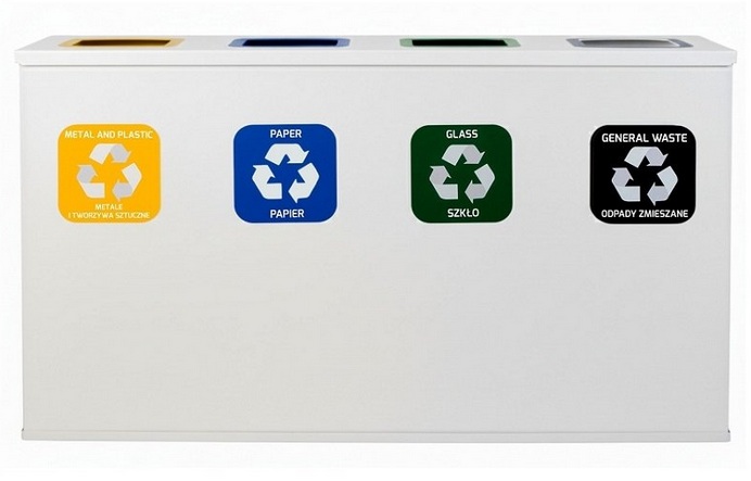 Stacja Segregacji Odpadów 4x 60l EKO STATION BIAŁA – Pojemniki na Papier, Plastik, SZKŁO ZMieszane