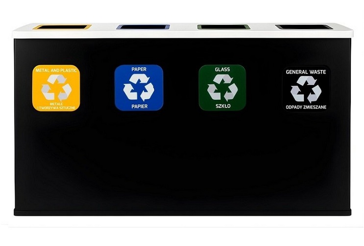 Stacja Segregacji Odpadów 4x 60l EKO STATION CZARNA/BIAŁA – Pojemniki na Papier, Plastik, SZKŁO ZMieszane