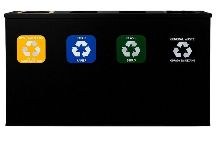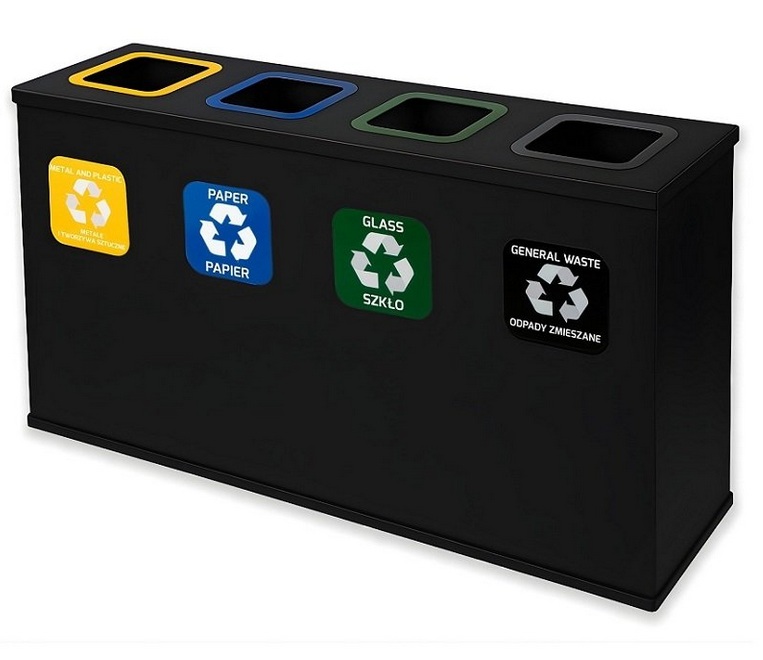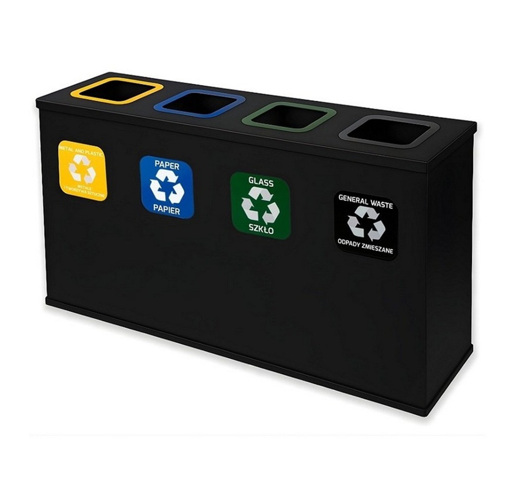Stacja Segregacji Odpadów 4x 60l EKO STATION CZARNA – Pojemniki na Papier, Plastik, SZKŁO ZMieszane