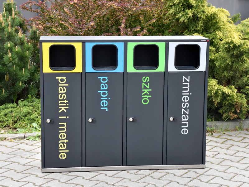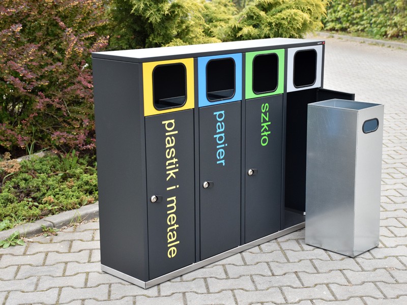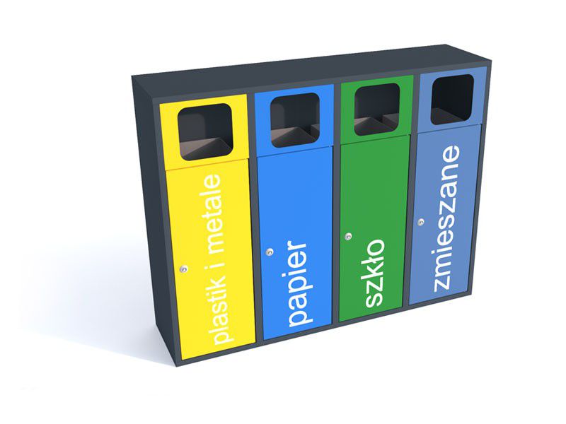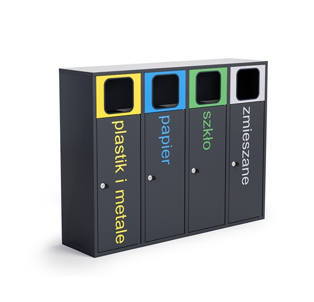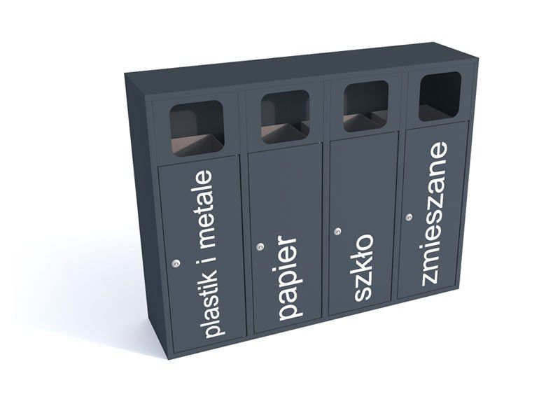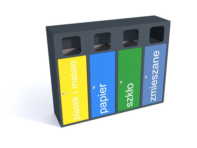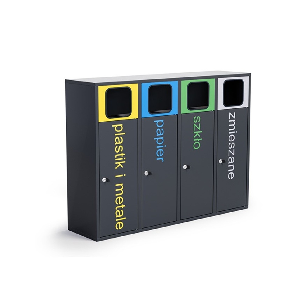 - kolor: grafit ( RAL 7021), moduły – wg wybranej kolorystyki systemu do segregacji odpadów.