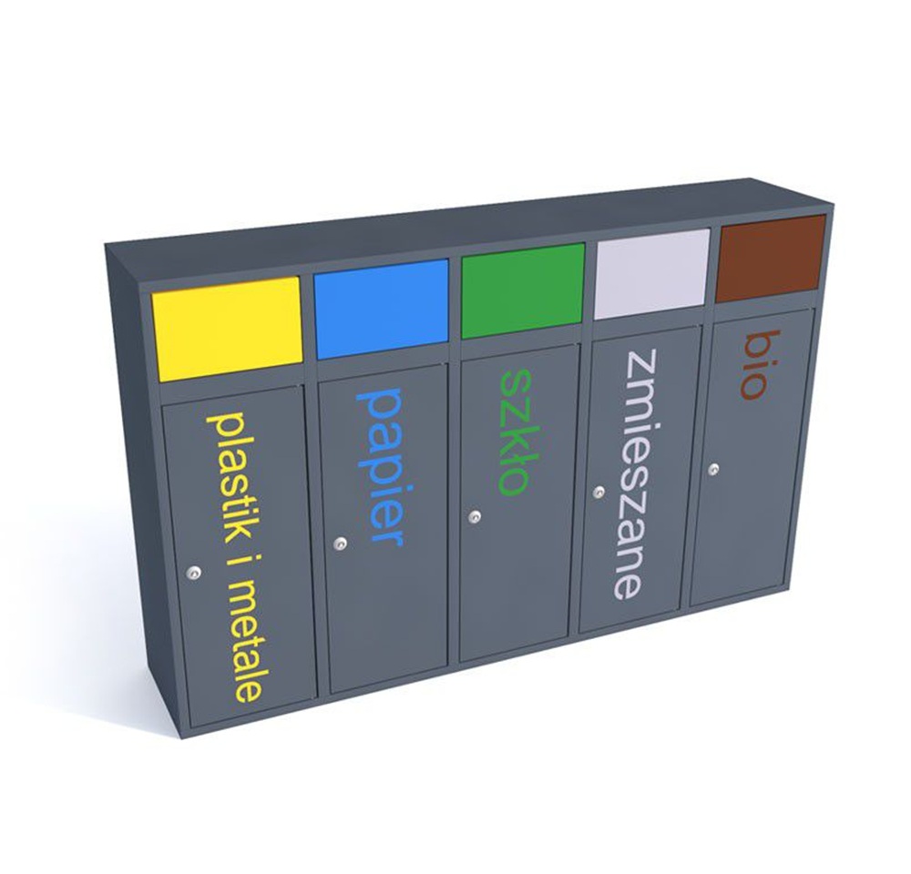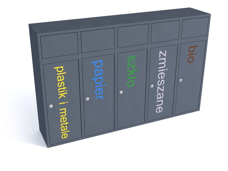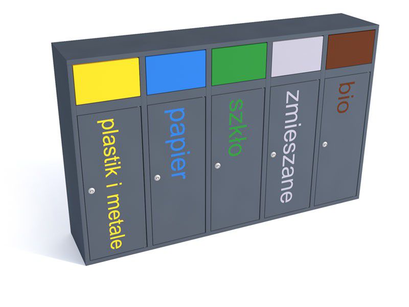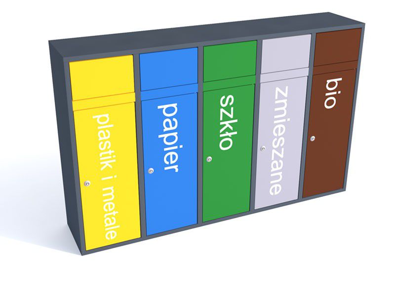 - kolor: grafit ( RAL 7021), moduły – wg wybranej kolorystyki systemu do segregacji odpadów.