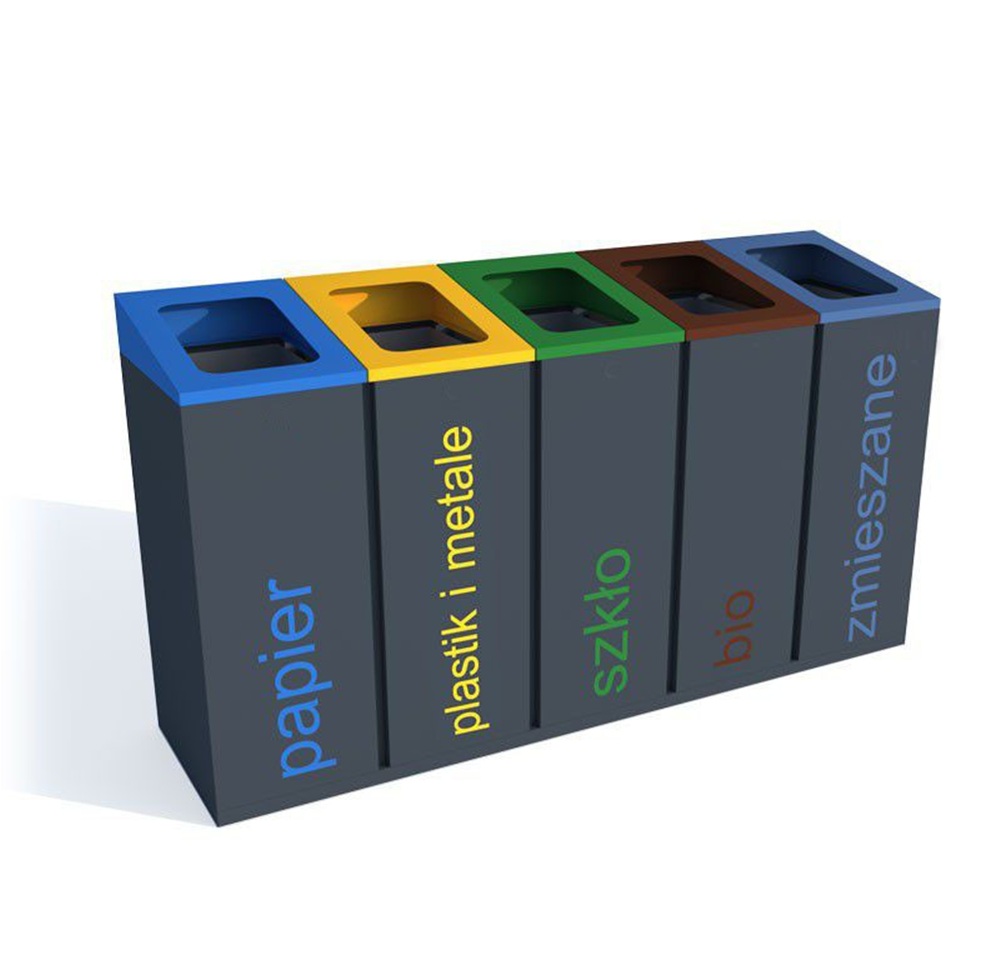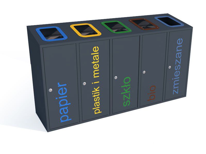 • kolor: grafit ( RAL 7021), moduły – wg wybranej kolorystyki systemu do segregacji odpadów.