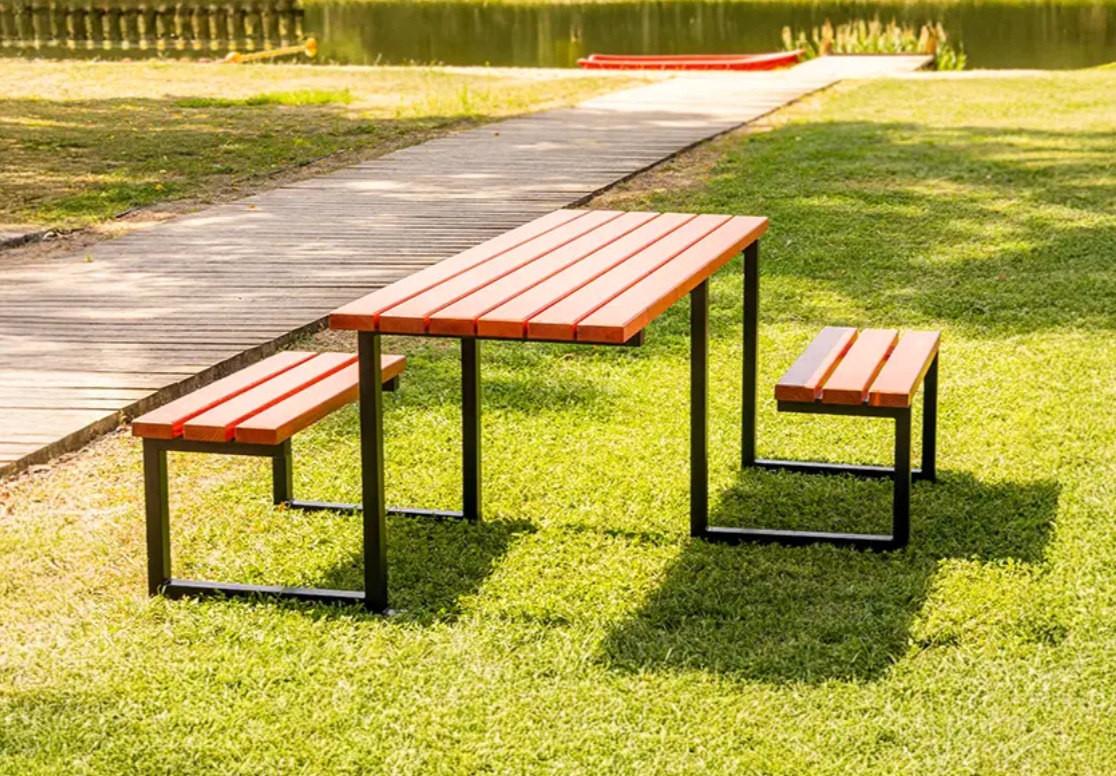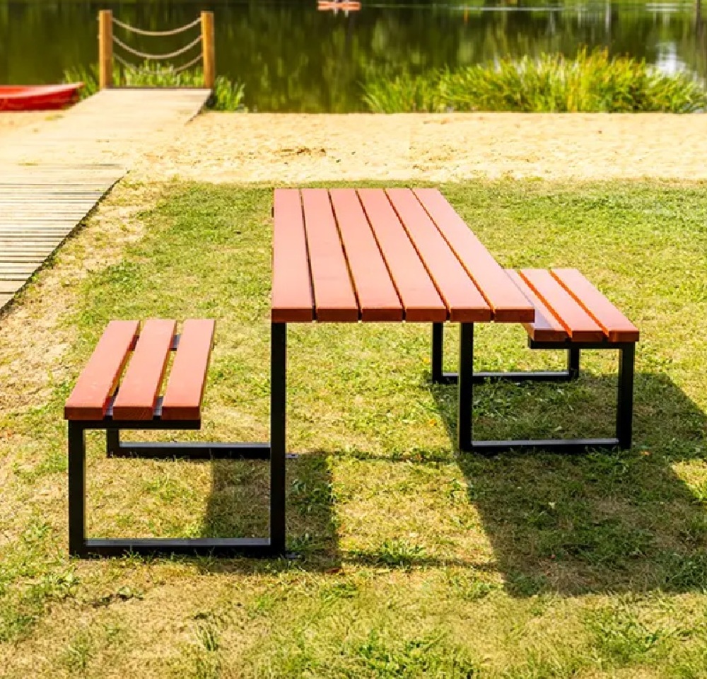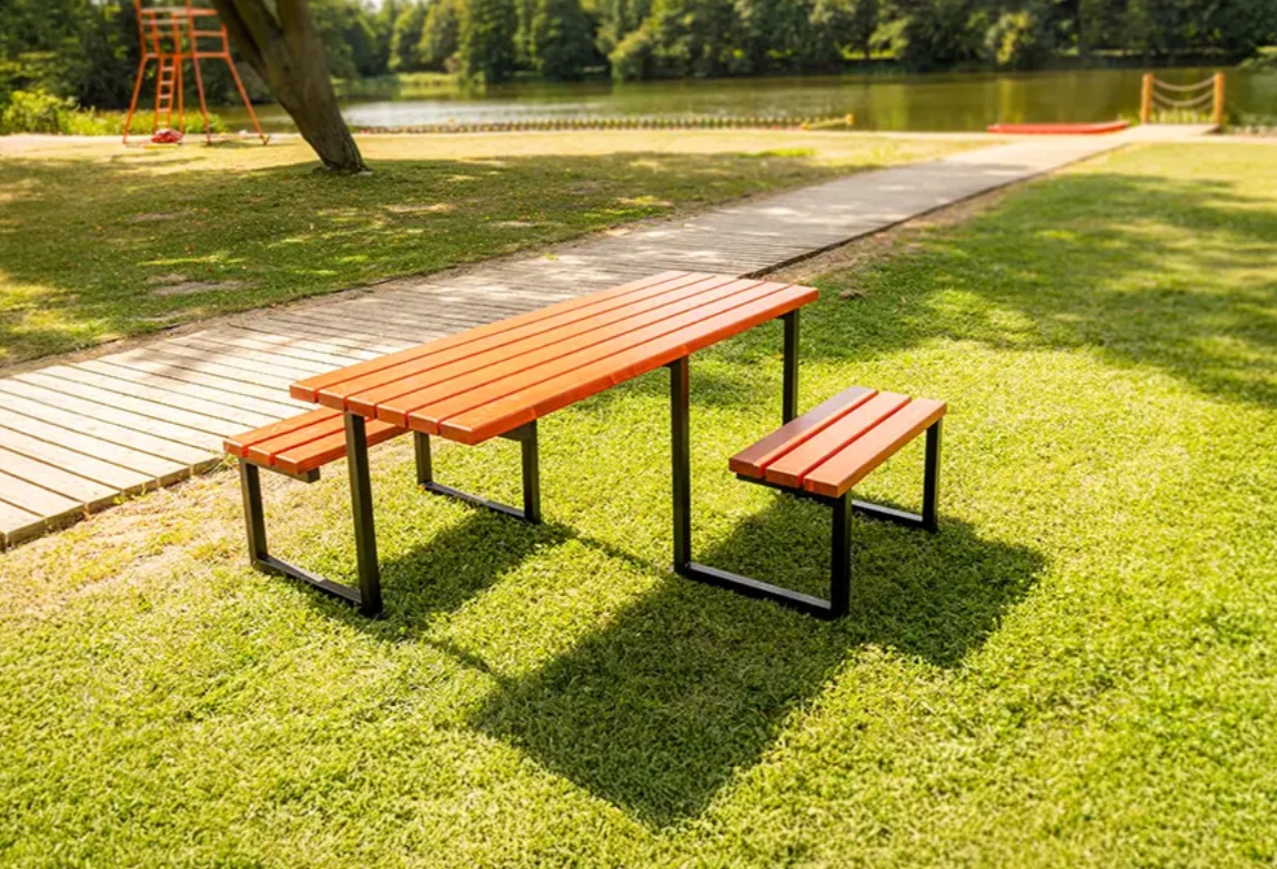 Stół miejski Kari łączy prostotę i funkcjonalność z pełną dostępnością. Zaprojektowany tak, by także osoby poruszające się na wózkach inwalidzkich miały wygodny dostęp.  Stalowa konstrukcja zapewnia stabilność i odporność na intensywne użytkowanie, a drewniane elementy dodają całości naturalnego uroku.Wysokość blatu oraz odpowiednio dobrane proporcje ławek sprawiają, że korzystanie z zestawu jest komfortowe zarówno dla dzieci, dorosłych, jak i osób starszych. Stół malowany proszkowego, co skutecznie chroni stalowe elementy przed korozją i uszkodzeniami mechanicznymi.