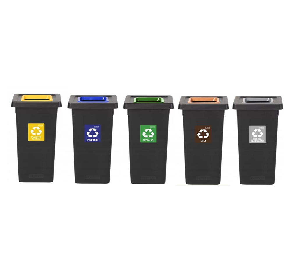 - Etykiety: PLASTIK, SZKŁO, PAPIER, BIO, ZMIESZANE